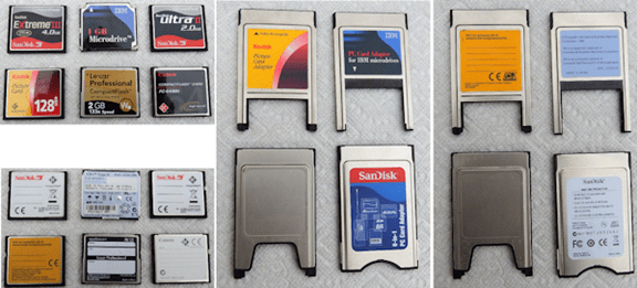 Six CompactFlash Cards (various sizes), Four CompactFlash/PCMCIA Adapters, and neck strap (not shown).