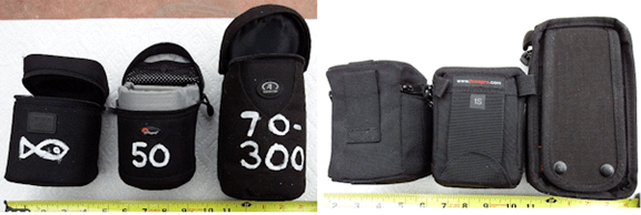Three Lens Cases w/Belt Loops: Cost unknown. Cases have been labeled by former owner with white fingernail polish.