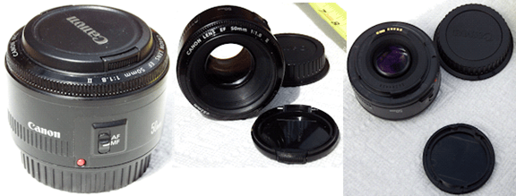Canon EF 50mm f/1.8 Standard AutoFocus Lens: Amazon New = $98, Used = $96 – http://www.amazon.com/Canon-50mm-Standard-AutoFocus-Lens/dp/B00005K47X/ref=sr_1_2?s=electronics&ie=UTF8&qid=1396748062&sr=1-2&keywords=canon+ef+50mm+1%3A1.8