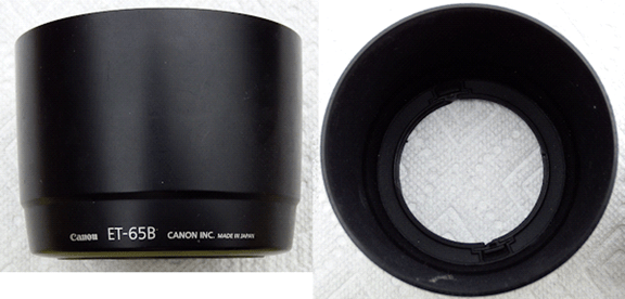 Canon ET-65B Lens Hood for EF 70-300mm: Amazon New = $38, Used = n/a – http://www.amazon.com/Canon-ET-65B-70-300mm-4-5-5-6-Lenses/dp/B0007MXVH0/ref=sr_1_1?ie=UTF8&qid=1396738866&sr=8-1&keywords=canon+et-65b