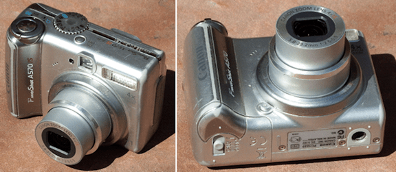 Canon PowerShot A570IS: Amazon New = $295, Used $35 – http://www.amazon.com/Canon-PowerShot-Digital-Optical-Stabilized/dp/B000NK3H4S/ref=sr_1_2?ie=UTF8&qid=1396739647&sr=8-2&keywords=canon+powershot+a570%2Fs