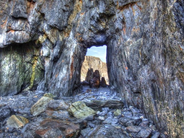 Passage leading to adjacent cove only accessible at low-tide.