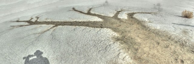 If you pour water onto the polygonal dessication cracks, it will be completely absorbed in a few minutes with no trace.