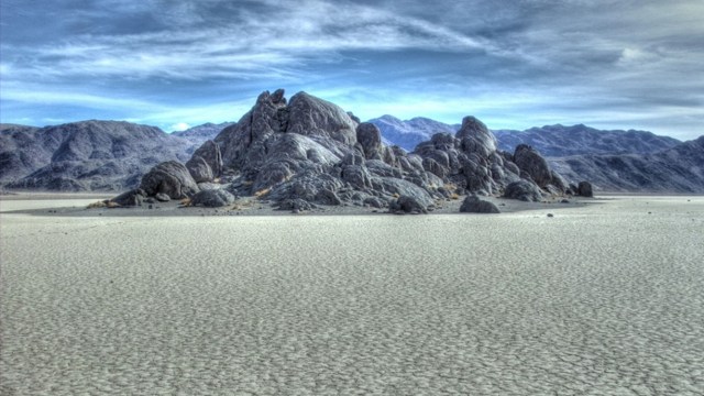 The Grandstand is an island of quartz-monzonite at the north end of Racetrack Playa.