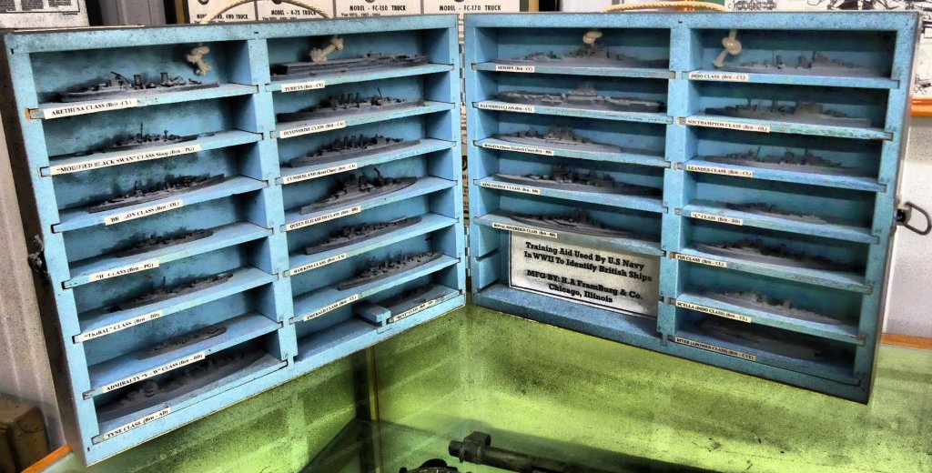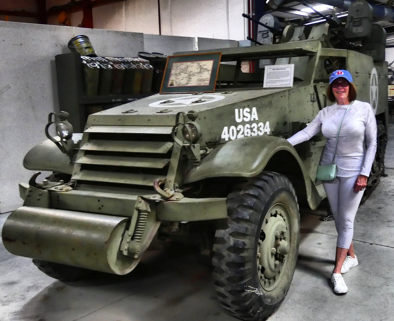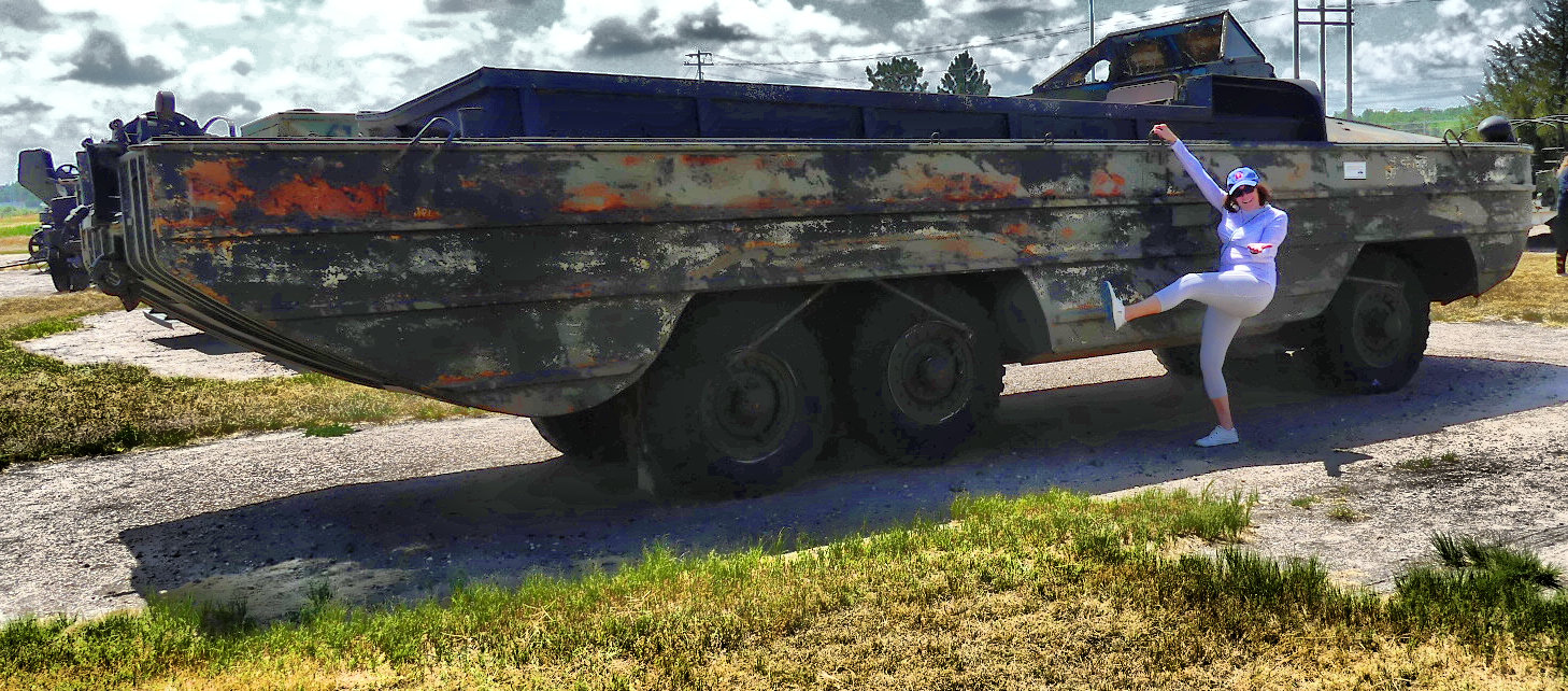 Note multiple 50-cals. This bad boy served from Normandy to the Seine.Ship identification models. Always check these before launching a torpedo to avoid sinking a friendly vessel.Impeccable restoration of the high-ranking staff car.Lil’ vehicle with powerful punch. Good for road rage.Motorized HowitzerBlade on back serves as recoil brace.Never seen one of this that hasn’t been converted into a brightly colored tour boat for drowning tourists.Cure for night blindness.Just love them half-tracks.Note Kilroy head peeking out of driver’s hatch.Dyan noticed a commonality.A lot of love has gone into these restorations. A great museum well worth visiting.First night in the new-to-me popup-camper. Slept like a baby while dreaming of half-tracks.