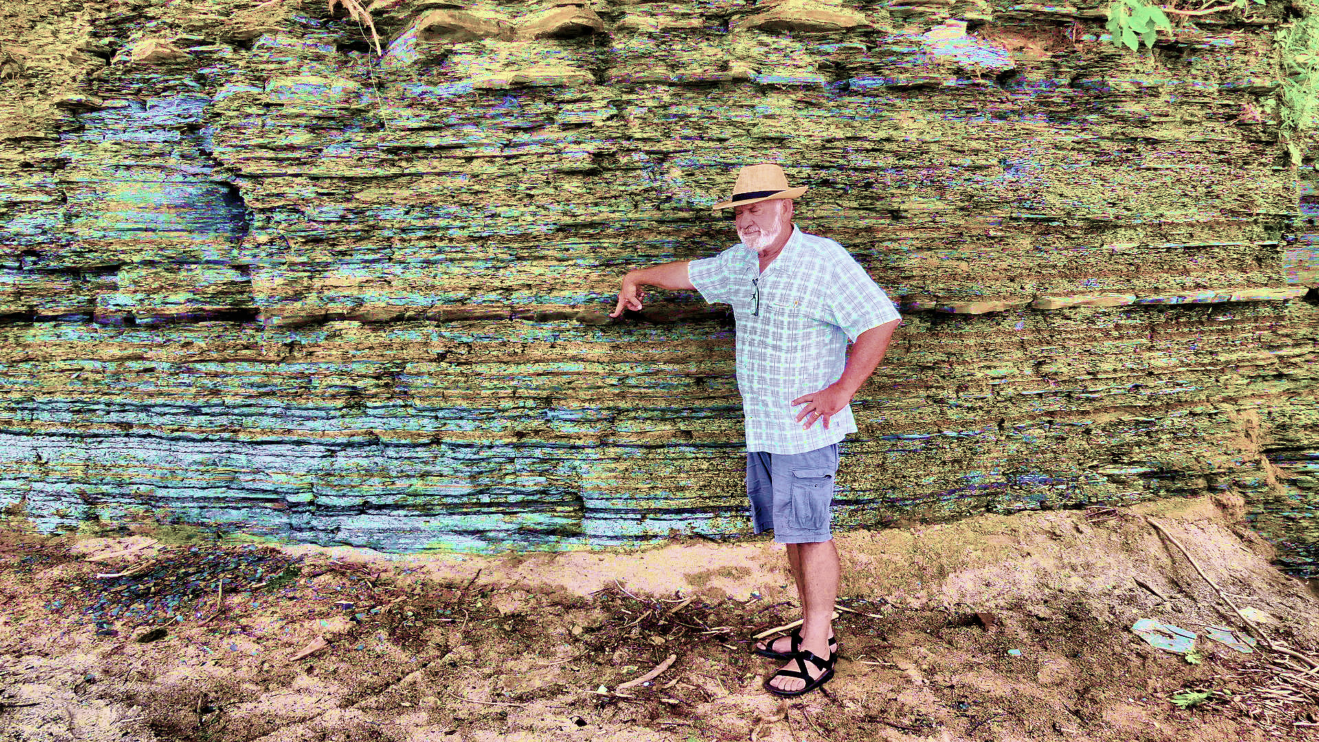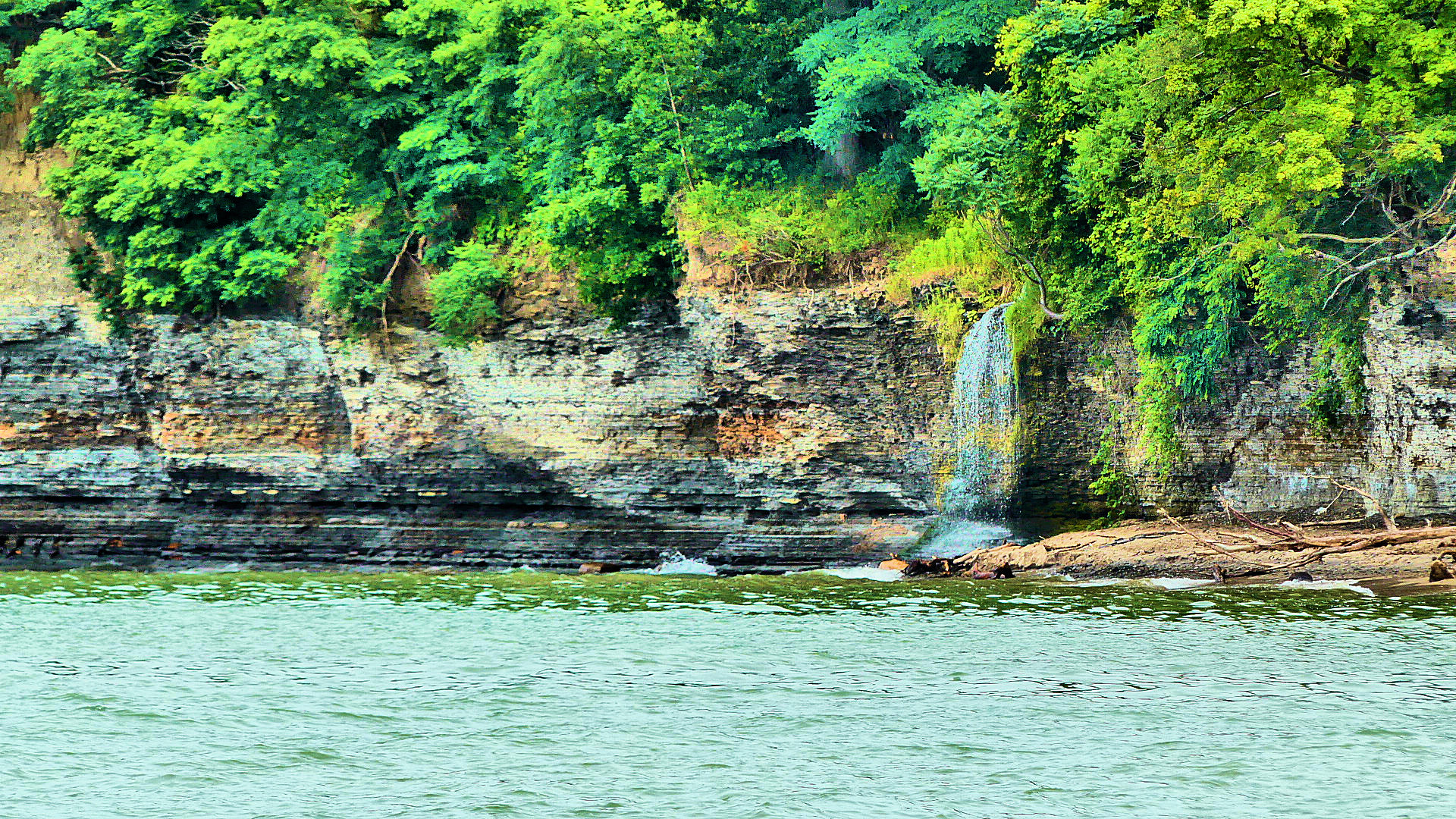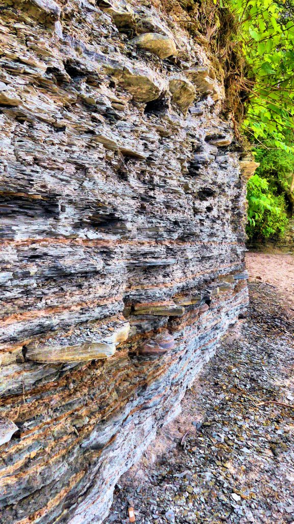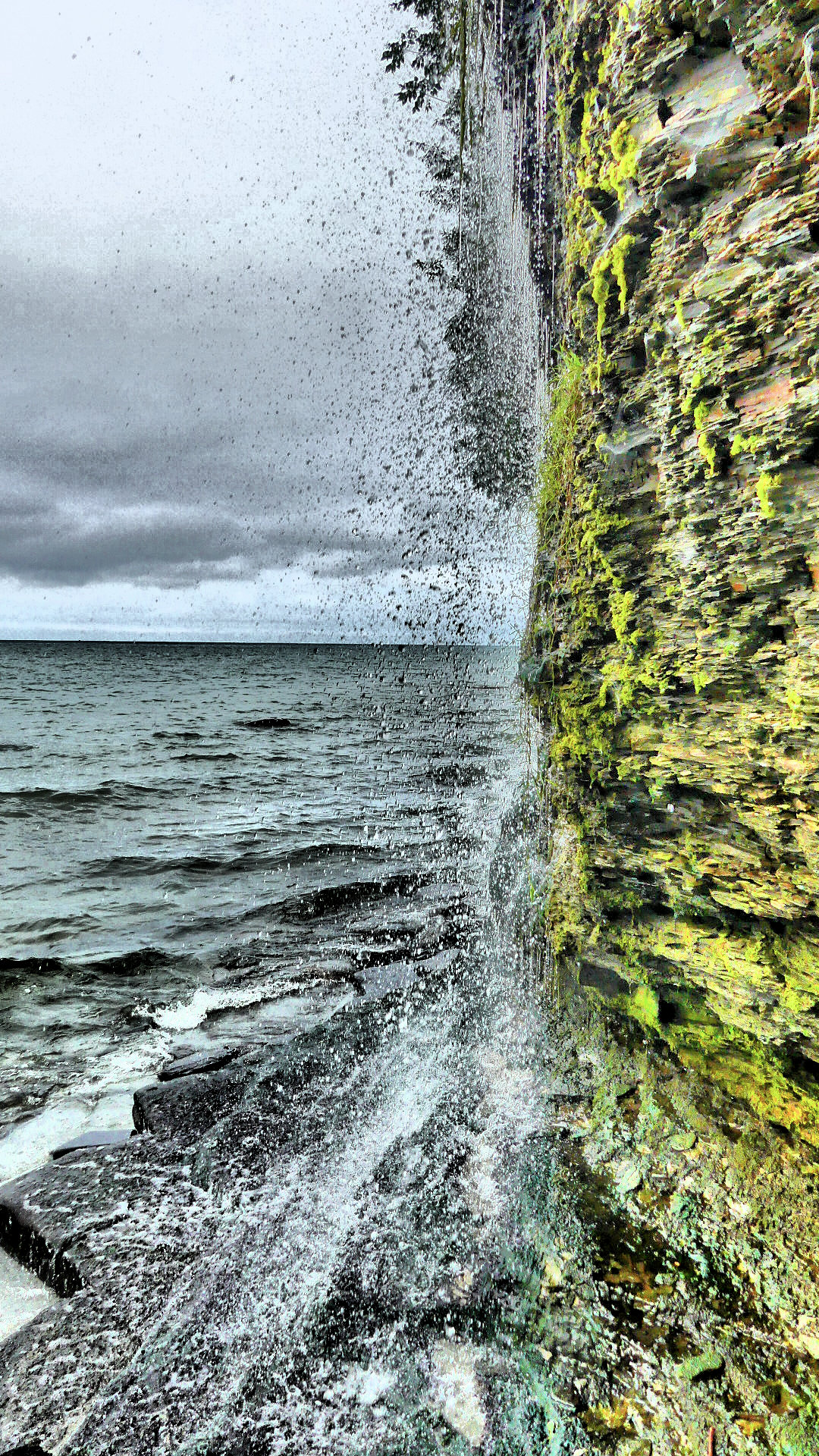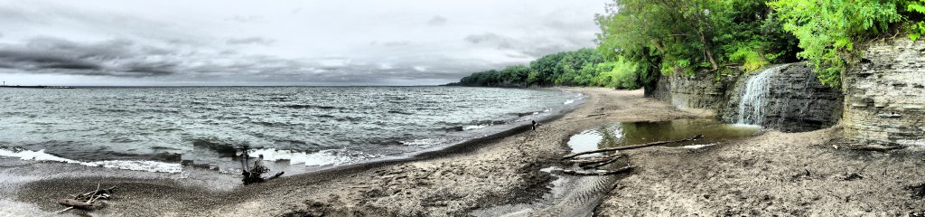 Lake Erie coastline – Pike Shale.Lake ErieWaterfall over Pike ShalePike Shale closeup.Another waterfall over Pike Shale.VannaScale ObjectSandstone ledges within Pike Shale.Colorful fish resting on beach.Ugly vulture eyeballing colorful fish resting on beach.Water cascading over Pike Shale in Lake Erie.Dyan preparing for shower.Dyan searching for beach glass.Dyan generously but reluctantly sharing beach glass with stick wielding ruffian.