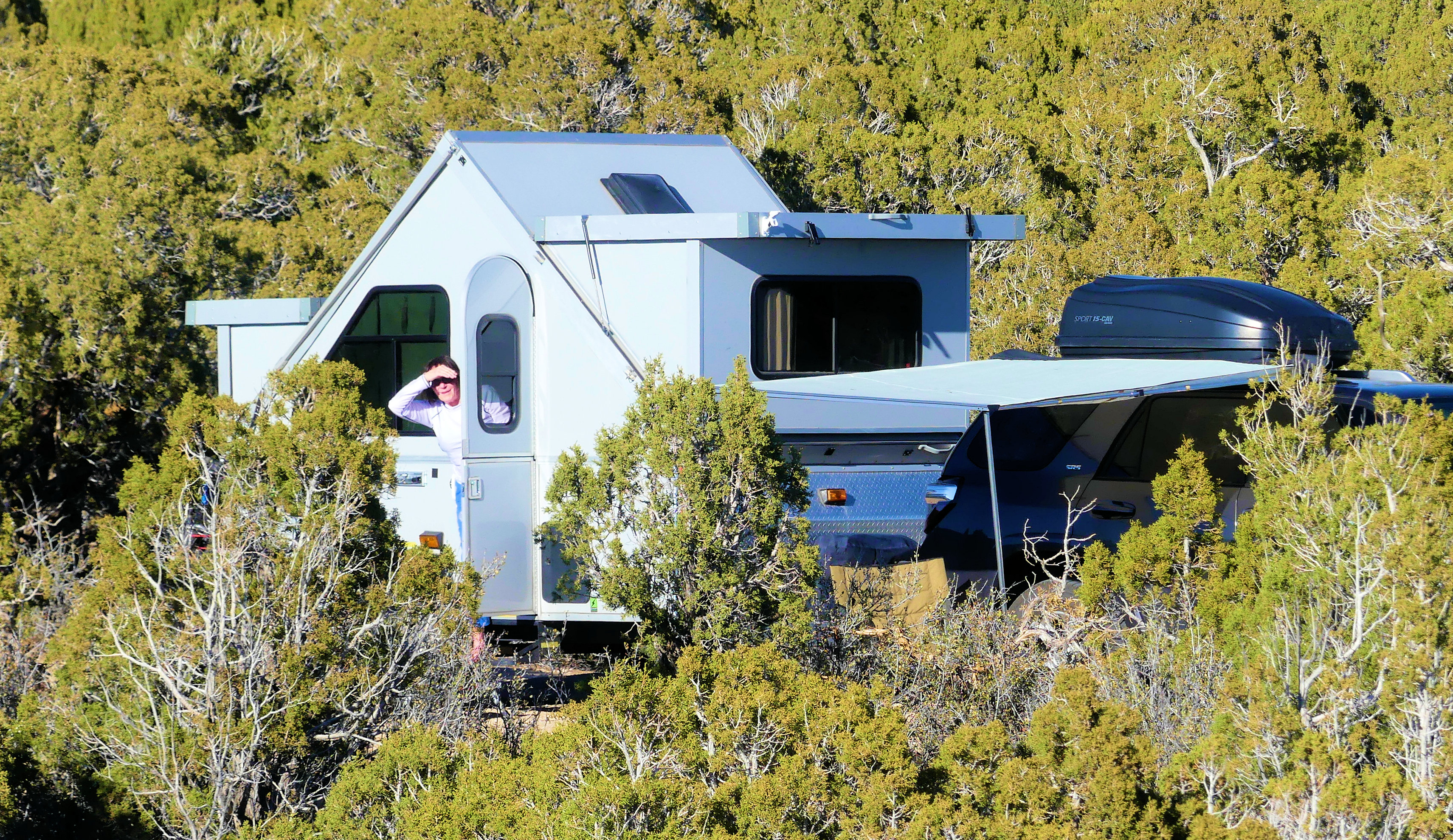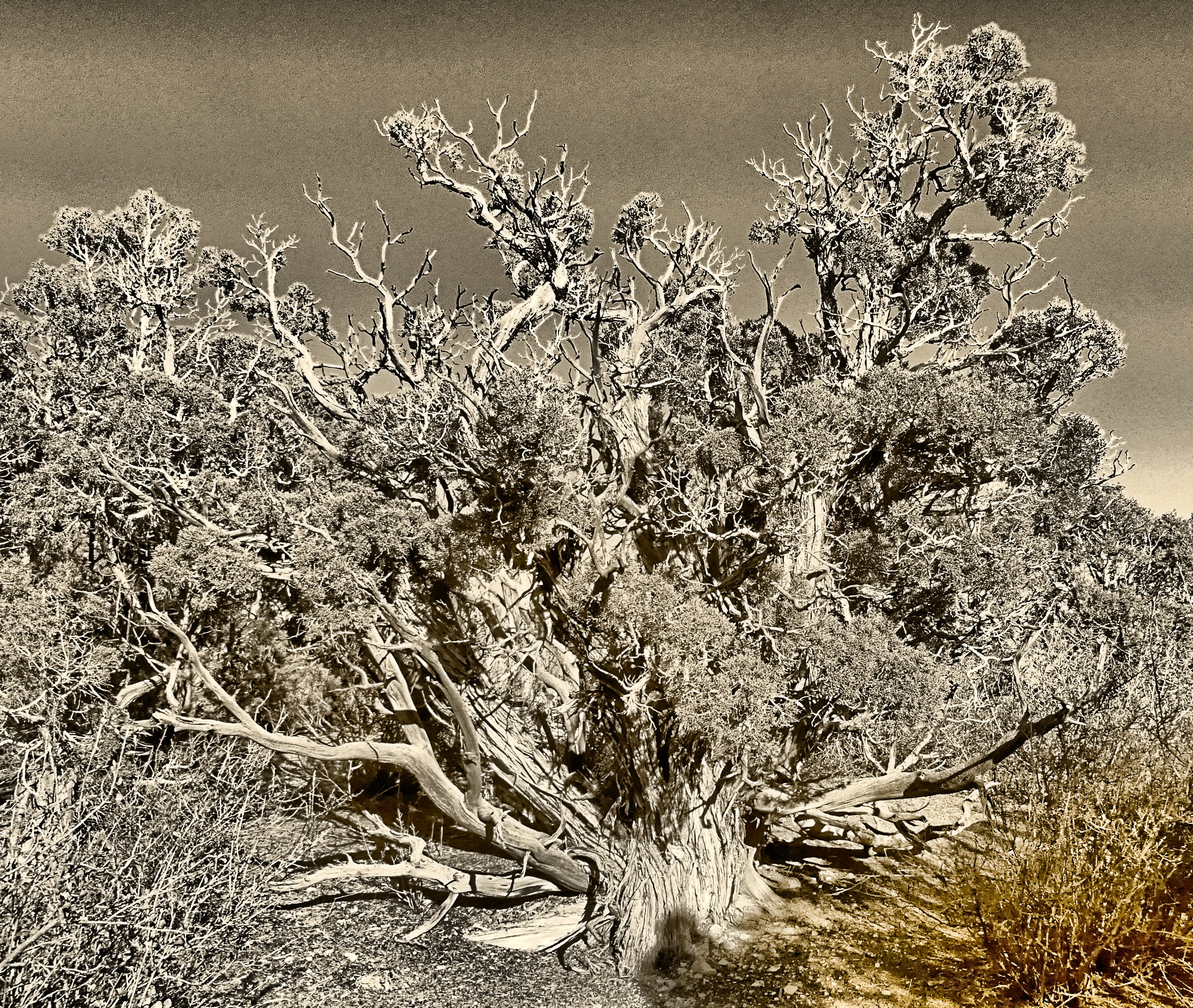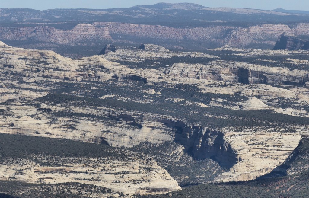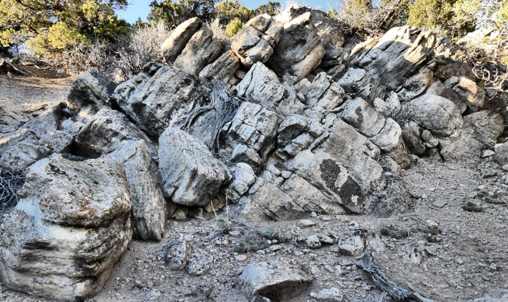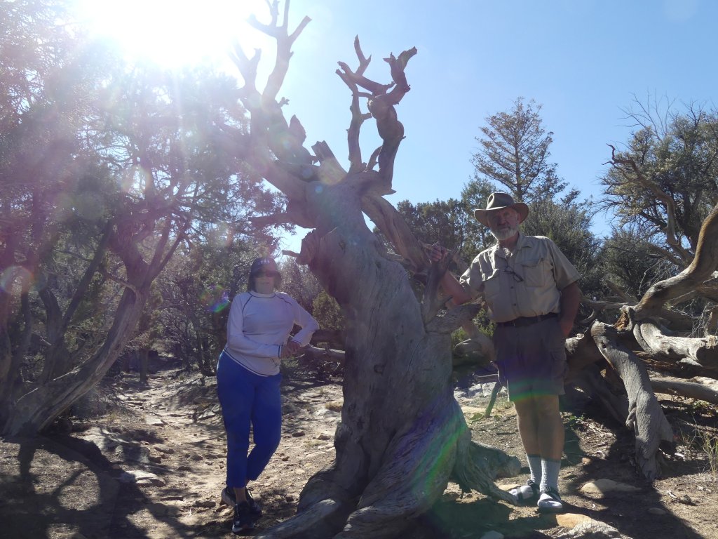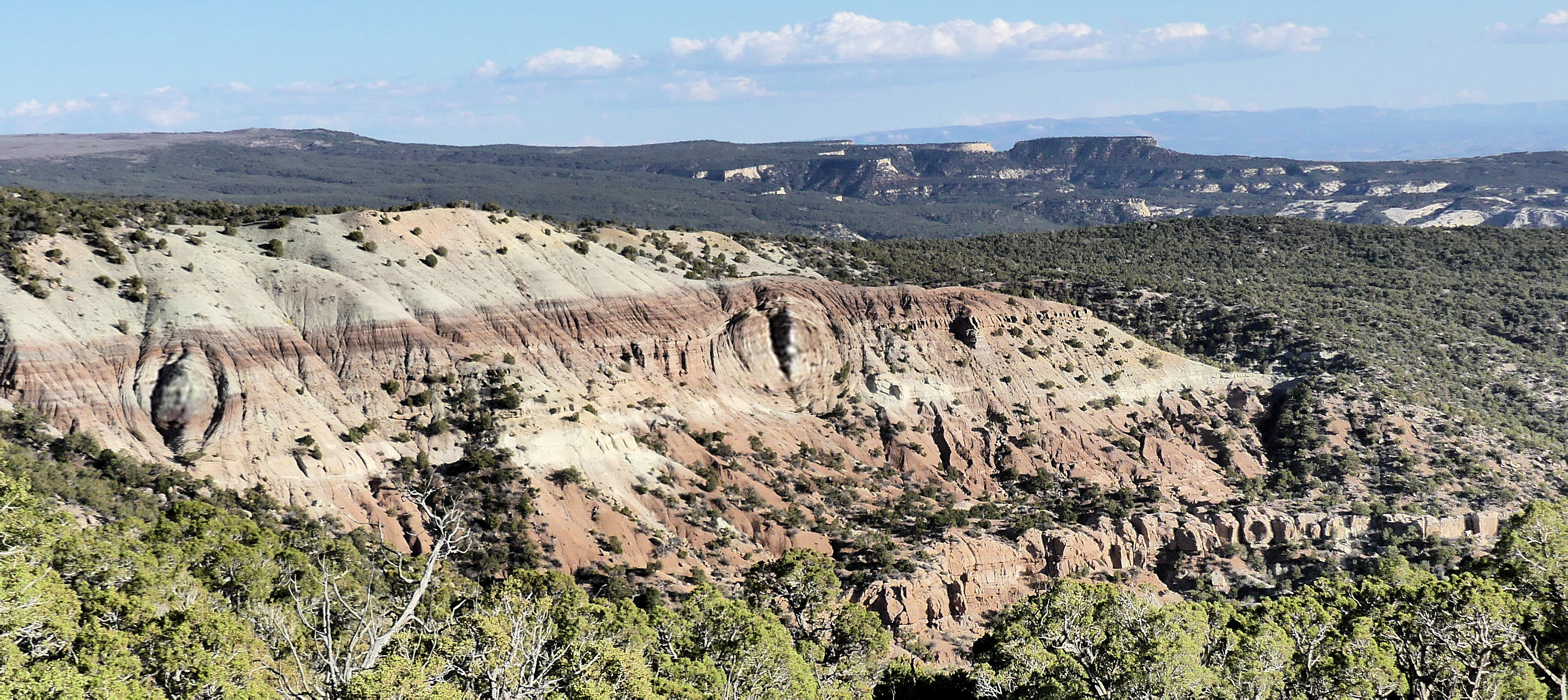 Reservoir along the route.Zooming in on a small segment of the Dinosaur National Monument Overlook.Looking down into deeply incised canyons.Oodles of structure.More incised drainage.A tripod allows us to merge pictures to include both of us.Bristlecone beast.Jawbone served as good omen on road leading to our campsite.Found a campsite on BLM land without any neighbors for miles in any direction.Nestled in a pinion forestPinion forest.Trolls.Pinion mother.Elderly pinion.View to SE of campsite.Marly sandstone.Stonefaced.