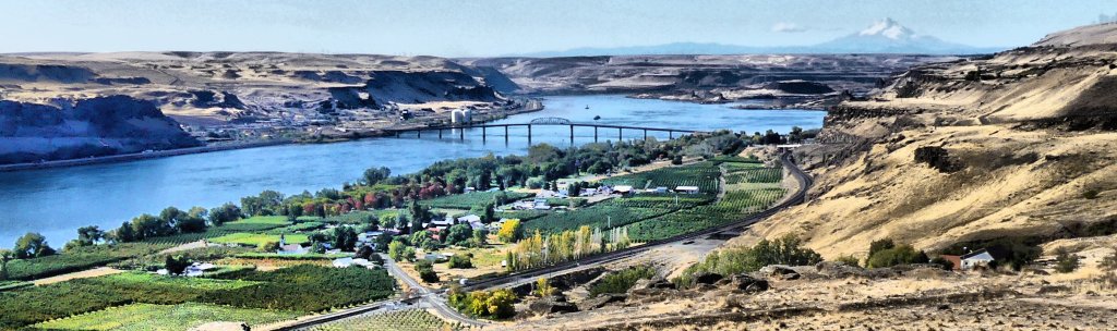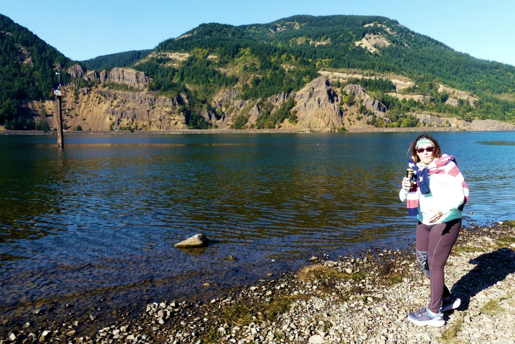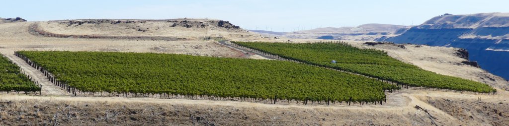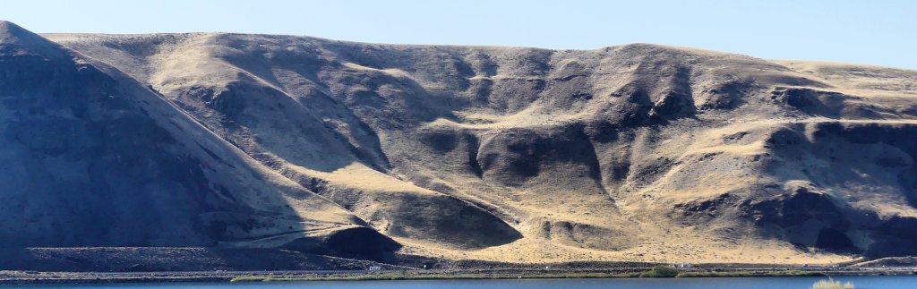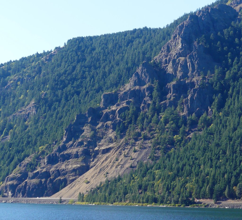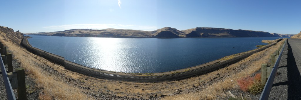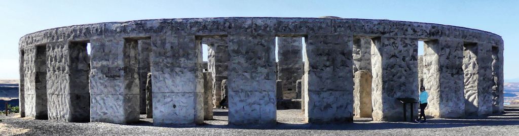 Large creek. The locals call it the ColumbiaInteresting slumpy-looking feature within the Columbia Gorge.The numerous dams along the Columbia power the northwest’s server farms.A Stonehenge reproduction along the Washington side of the river was built to honor locals killed during World War One.Look closely and you’ll see that all of the other tourists look just like Dyan.Vineyards on the Washington side.If it’s a rock, it’s basalt. Basalt, basalt, and more basalt.Basalt.Bridges, dams, railroads on both sides of the river. Lots of commerce but no barges because of dams.Dyan at our campsite.Burl rustlers have been active in the state park.